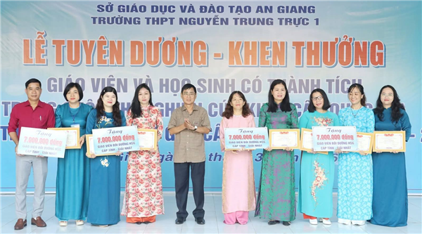 Ngày 30/3, Trường THPT Nguyễn Trung Trực 1 (tỉnh An Giang) tổ chức lễ tuyên dương, khen thưởng giáo viên và học sinh đạt thành tích trong Cuộc thi nghiên cứu khoa học, kỹ thuật cấp quốc gia dành cho học sinh trung học cơ sở, THPT và Kỳ thi chọn học sinh giỏi và giải toán trên máy tính cầm tay (caisio) cấp tỉnh, năm học 2025 - 2026.