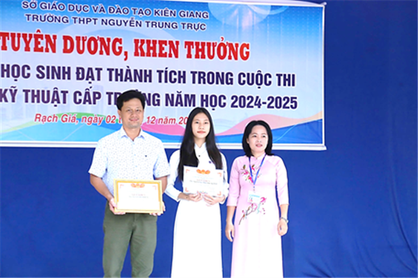 Đến năm lớp 12 (2025-2026), chặng đường cuối cùng cũnglà lúc thử thách lớn nhất. Áp lực thi cử, định hướng tương lai và kỳ vọng thànhtích khiến mọi thứ trở nên căng thẳng hơn. Tuy nhiên, kinh nghiệm tích lũytrong hai năm trước đã giúp hai cha con vững vàng vượt qua. Với năm học cuốicấp này, Nguyễn Ngọc Minh Thư (12A9) quyết định tham gia kỳ thi chọn học sinhgiỏi cấp tỉnh, điều này thể hiện sự trưởng thành rõ rệt của cô con gái. Sauthời gian được luyện tập cùng với cha, một lần nữa, em giành giải thưởng họcsinh giỏi cấp tỉnh. Để ghi nhận những kết quả đạt được của em, Phường Rạch Giáđã trao tặng danh hiệu “Học sinh 3 tốt” cho cô học trò có nhiều thành tích nàyvào dịp Kỷ niệm 95 năm ngày thành lập Đoàn Thanh niên Cộng sản Hồ Chí Minh.