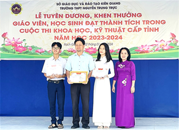 Hình 1: Dự án KHKT đạtgiải cấp tỉnh tại Lễ Tuyên dương – khen thưởng năm học 2023-2024