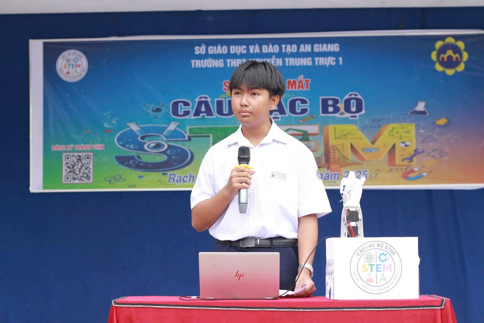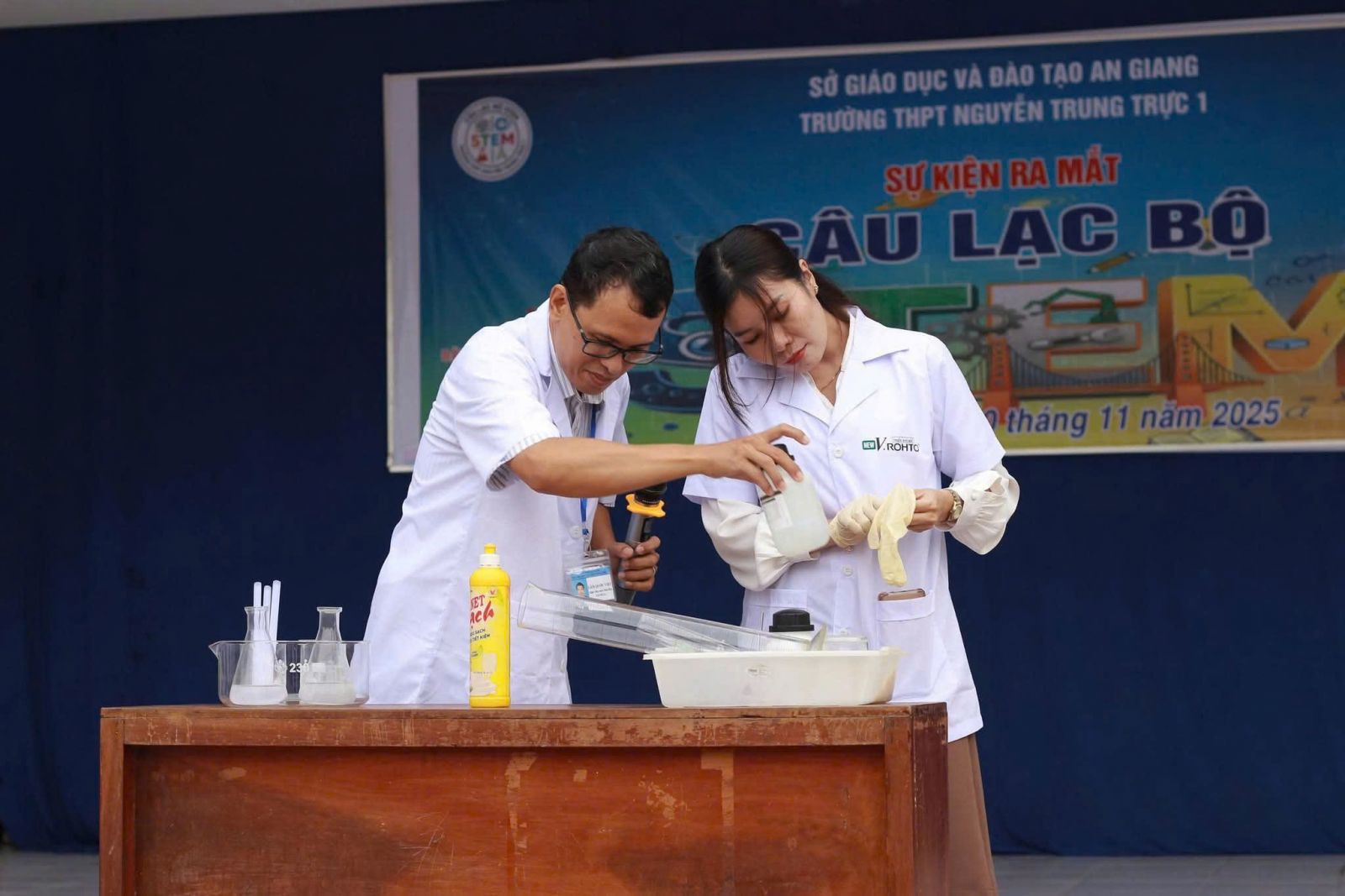 Giáo dục STEM, mô hình giáo dục dựa trên cách tiếp cận liên môn, giúp học sinh áp dụng kiến thức khoa học, công nghệ, kĩ thuật và toán học. Chỉ trong vài năm đẩy mạnh triển khai, hoạt động STEM tại trường THPT Nguyễn Trung Trực 1 đã phát triển và đạt được nhiều thành tích trong các cuộc thi. Một trong những nhiệm vụ trọng tâm của ngành Giáo dục và Đào tạo năm học 2025-2026 là đẩy mạnh chuyển đổi số trong quá trình dạy và học, tổ chức hiệu quả các hoạt động giáo dục STEM nhằm thực hiện mục tiêu của Chương trình Giáo dục phổ thông 2018. Để góp phần chuyển hóa mục tiêu này thành hành động, Trường THPT Nguyễn Trung Trực 1 tổ chức sự kiện ra mắt Câu lạc bộ (CLB) STEM năm học 2025 – 2026 vào lúc 7h00, ngày 10/11/2025. Ban Chủ nhiệm CLB gồm 08 thành viên, chủ nhiệm là Tiến sĩ Nguyễn Thành Dũng (Tổ Hóa - Sinh). CLB STEM là nơi tập hợp các bạn học sinh có khả năng tìm tòi, khám phá, say mê áp dụng các kiến thức đã học vào thực tiễn. Đây là sân chơi bổ ích, lý thú tiếp nối các giờ học trên lớp nhằm nuôi dưỡng niềm đam mê, yêu thích các môn khoa học, công nghệ. Đến với CLB, học sinh được tham gia nghiên cứu ở các lĩnh vực như: Công nghệ thông tin, robot, AI, hệ thống nhúng, viễn thông; Toán học, khoa học dữ liệu, truyền thông đa phương tiện; Vật lý, Hóa học và Khoa học vật liệu; Khoa học đời sống, tài nguyên và môi trường. Buổi lễ ra mắt CLB STEM có sự tham dự của Lãnh đạo nhà trường, tổ trưởng các tổ chuyên môn, cùng đông đảo giáo viên và học sinh. Phát biểu tại buổi lễ, Thầy Nguyễn Thanh Tùng (Hiệu trường nhà trường) đã nhấn mạnh ý nghĩa của việc thành lập CLB STEM và truyền thông điệp niềm đam mê nghiên cứu khoa học đến toàn thể thầy cô và toàn thể học sinh. Tại buổi ra mắt, các em còn được cung cấp thông tin về kế hoạch hoạt động, cách tham gia Câu lạc bộ bằng cách quét mã QR qua lời giới thiệu của thầy Danh Sang (Phó chủ nhiệm CLB).