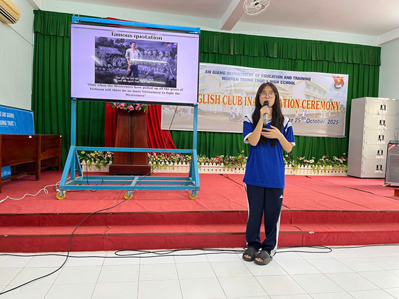 Chương trình lần này được lồng ghép vòng chung kết cuộc thi thuyết trình bằng tiếng Anh với chủ đề “Giới thiệu về cuộc đời và chiến công của anh hùng dân tộc Nguyễn Trung Trực”, nhằm giúp học sinh hiểu thêm về truyền thống yêu nước, tinh thần bất khuất và lòng dũng cảm của vị anh hùng mang tên trường.